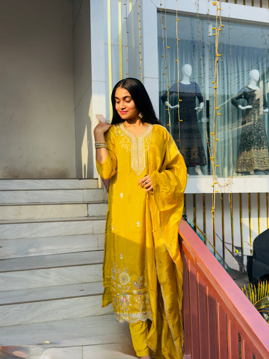 Elevate your festive wardrobe with this sophisticated party wear salwar set, meticulously crafted for those...